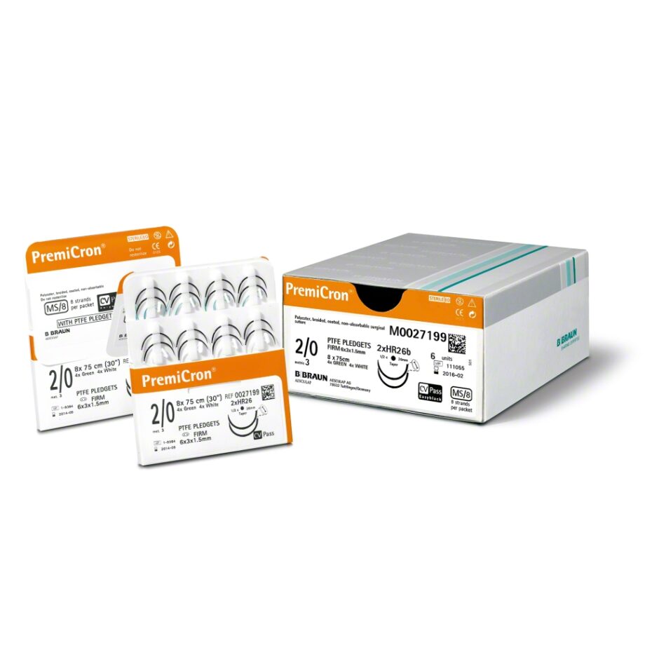 - Extremadamente resistente, sutura de poliester trensad y recubierta de silicona, suave paso atravez de los tejidos, especial para ligamentos, tendones y cardiologia.